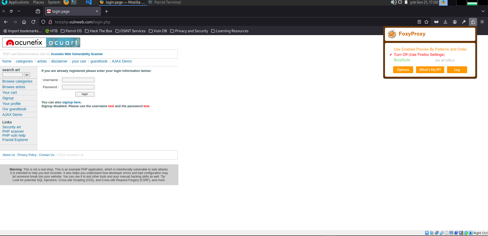 First, we need to change our browser’s proxy settings to work with Burp. For this, using the FoxyProxy tool is ideal.